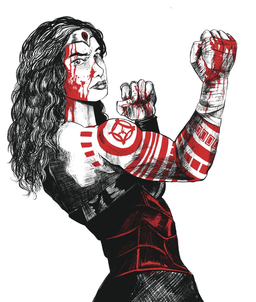Here’s an example of her current fan-favorite look as Absolute Wonder Woman by Syracuse student Julie English!