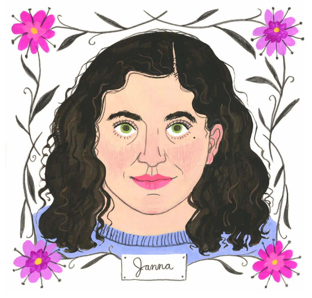 Janna Morton is a Baltimore-based artist known for colorful and captivating illustrations, comics, and paintings. Her work explores themes of nature, inclusivity, overlooked beauty, grief, and joy. Discomfort is a comic about struggling to feel positive about one’s body when nothing in the world seems to be built with it in mind. This comic was created traditionally with gouache and mixed media and edited digitally.
